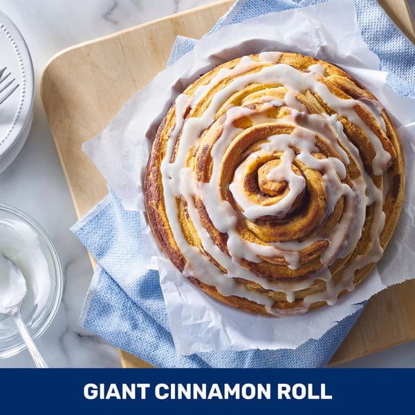 These large cinnamon rolls provide a sweet reason for your family to gather around the table. Simply heat the oven to 350° F (or 325° F for a nonstick pan), place the rolls two inches apart on a greased cookie sheet, bake for 16–20 minutes or until dark golden brown, and spread the delicious icing on top. Nothing wakes up a day like an oven-fresh cinnamon roll.