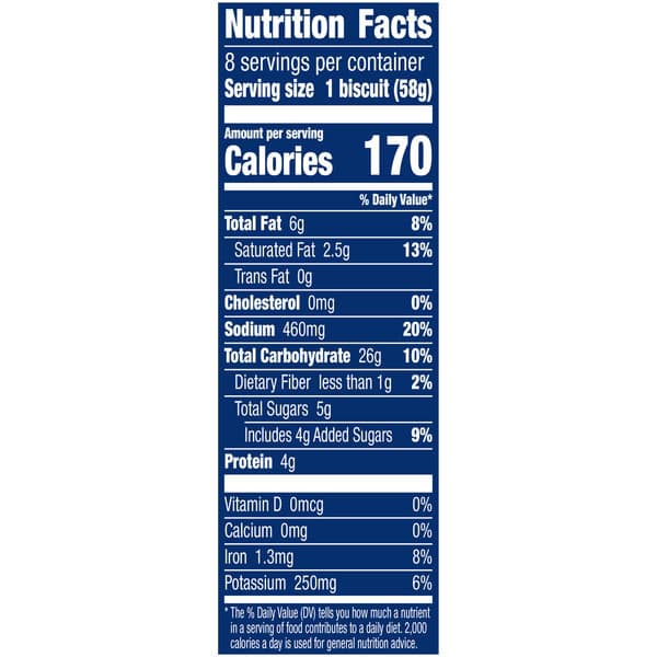 Delight your family with the delicious taste of Pillsbury Grands! Flaky Layers Honey Butter Biscuits, naturally and artificially flavored, featuring more flaky layers. Add these irresistible and easy to bake, flaky biscuits to any breakfast, brunch, or dinner for a sweet-savory twist. Place on a cookie sheet and in just a few easy steps, you can create fluffy, soft biscuits. With Pillsbury, you can whip up a delicious batch of honey butter biscuits, without the hassles of baking from scratch. Pair with butter, jam, and other tasty spreads. Or make them the star of a biscuits and gravy recipe or breakfast sandwich. Store a few cans of this Pillsbury biscuit dough in the refrigerator, ready to be baked at a moment’s notice. Makes eight big biscuits. At Pillsbury, we strive to make home baked moments extra special through our products and recipes, which help make cooking and baking easy and convenient for even the busiest families.