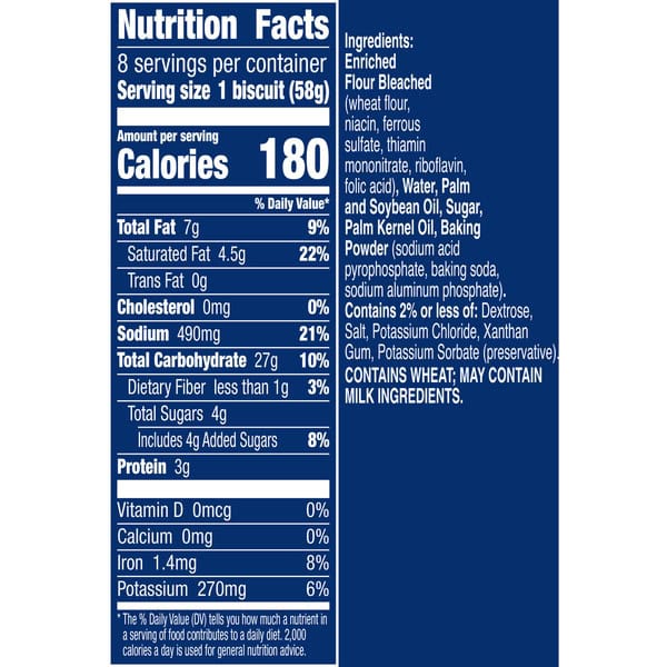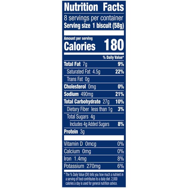 • CONTAINS: One 16.3 oz can of Pillsbury Grands! Original Southern Homestyle Refrigerated Biscuits; Makes 8 big biscuits