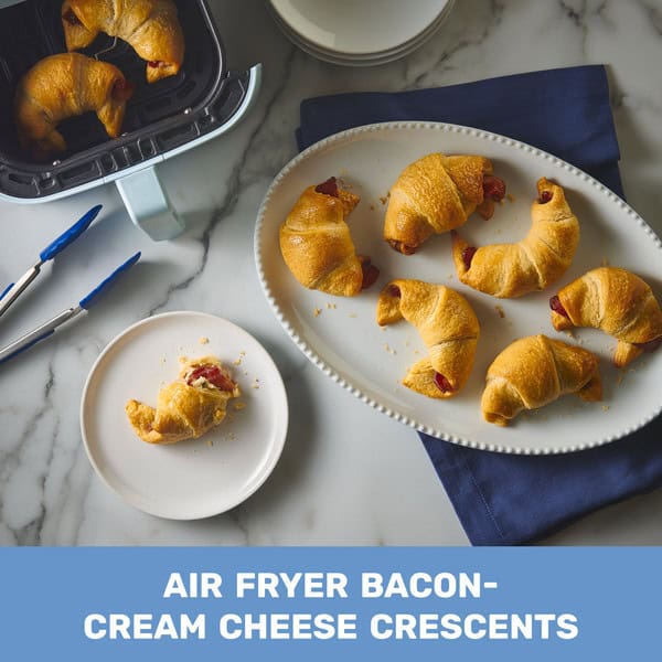 Oven Directions: Heat oven to 375 degrees F (or 350 degrees F for nonstick cookie sheet). Unroll dough; separate into 8 triangles. Roll up triangles, starting at wide end. Place on ungreased cookie sheet; curve each into crescent shape. Bake 9 to 12 minutes or until golden brown. Air Fryer Directions: Spray bottom of air fryer basket with cooking spray. Unroll dough; separate into 8 triangles. Roll up triangles, starting at wide end. Curve into crescent shape. Place 4 rolls in air fryer basket. Refrigerate remaining 4 rolls until ready to cook. Air fry at 300 degrees F (Directions developed using 6-quart air fryers. Air fryer temperatures and bake times will vary). Do not preheat. Cook 5 minutes. Remove basket. Use tongs to turn over rolls. Cook an additional 4 minutes, or until crescents are golden brown and cooked through. Repeat with remaining rolls. Do not eat raw crescent roll dough. Entire product must be baked once opened. Do not freeze or microwave unbaked poppin fresh dough.