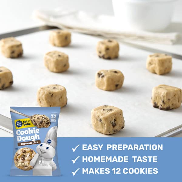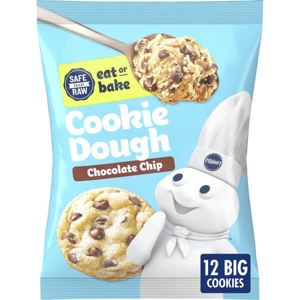 • CONTAINS: One 16 oz package of Pillsbury Ready To Bake Chocolate Chip Refrigerated Cookie Dough; Makes 12 big cookies