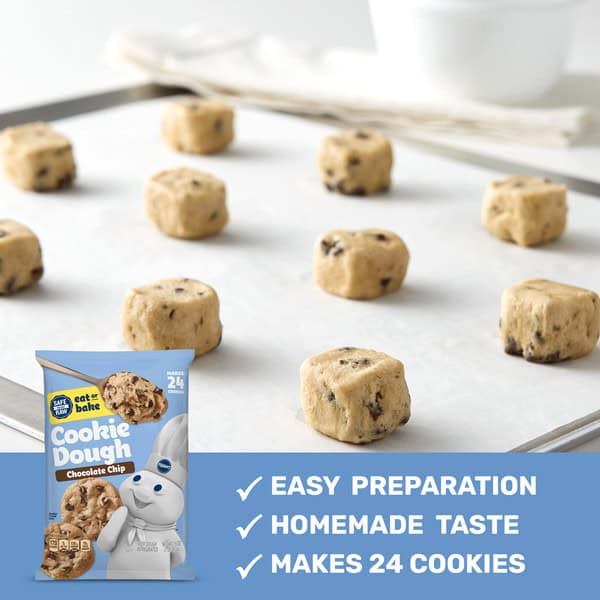 • CHOCOLATE CHIP COOKIE DOUGH: No mixing required with quick and easy Eat or Bake Pillsbury cookie dough