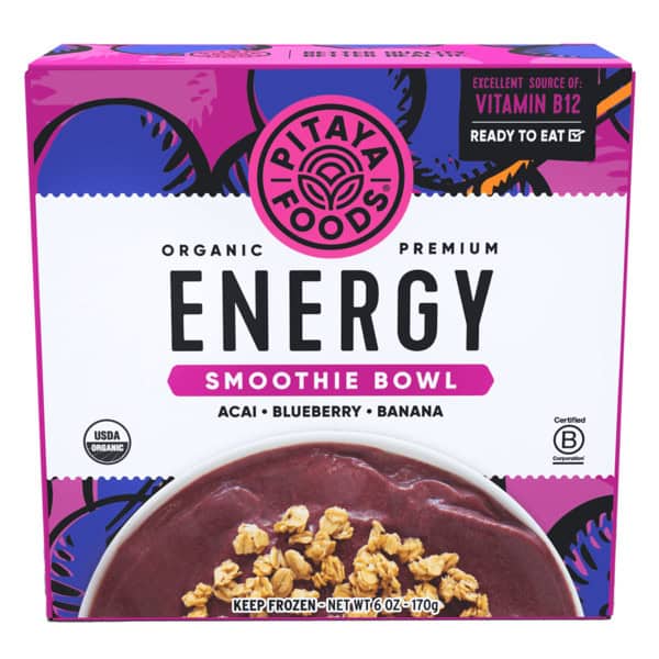 Directions: Keep your ready-to-eat smoothie bowl frozen. When it’s time to enjoy, remove the smoothie bowl out of the box and peel off the lid. Add suggested granola serving (if you desire) on-top of your bowl, then enjoy with a spoon. If your smoothie bowl is too thick, let it thaw for 5-10 minutes. Tip: Add fresh fruit for an even bigger snack!