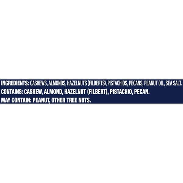 Contains: cashew, almond, hazelnut (filbert), pistachio, pecan. May contain: peanut, other tree nuts.