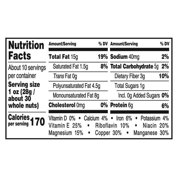 PLANTERS NUT-RITION Snack Nuts Heart Healthy Mix delivers a tasty combination of peanuts, almonds, pistachios, pecans, walnuts and hazelnuts, all sprinkled with a touch of sea salt to enhance the flavor. These nuts provide a good source of 6 essential nutrients. This mix may help you reduce your risk of heart disease so your heart will love them as much as your mouth. Scientific evidence suggest, but does not prove, that eating 1.5 ounces per day of most nuts as part of a diet low in saturated fat and cholesterol, and not resulting in reduced caloric intake, may reduce the risk of heart disease. Meeting the nutritional standards that you demand, these mixed snack nuts are a good source of fiber and have 15 grams of fat per serving. They’re great for those keeping Kosher and come in a resealable 9.75 ounce canister to ensure freshness and prevent spills. All trademarks, logos and images are owned by Hormel Foods Corporation, its subsidiaries and affiliates. Copyright Hormel Foods, LLC.