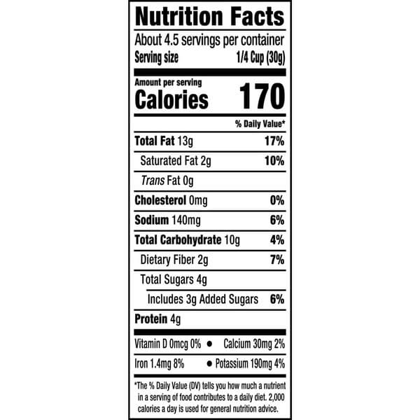 Cashews, Almonds, Sugar, Peanut Oil, Maltodextrin, Contains 2% Or Less Of Corn Syrup, Honey, Salt, Cayenne Pepper Sauce (aged Cayenne Red Peppers, Distilled Vinegar, Salt, Garlic), Citric Acid, Natural Flavor, Garlic Powder, Gum Arabic, Onion Powder, Spices, Xanthan Gum, Extractives Of Paprika, Lactic Acid, Vinegar