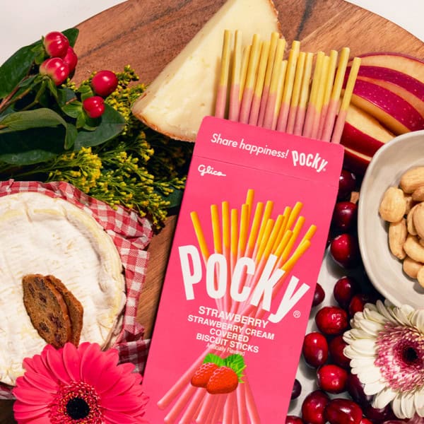 Pocky Strawberry infuses the delicious flavor of ripe strawberries into a sweet strawberry cream for the perfect combination.
