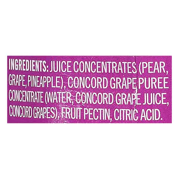 Juice Concentrates (pear, Grape, Pineapple), Concord Grape Puree Concentrate (water, Concord Grape Juice, Concord Grapes), Fruit Pectin, Citric Acid