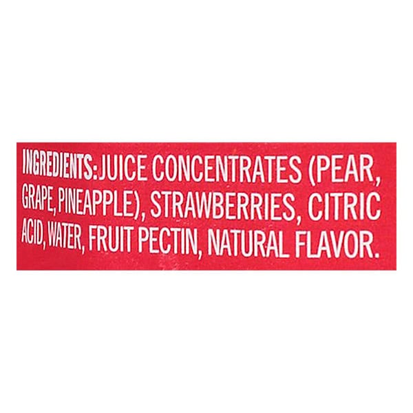 Ingredients: Juice Concentrates (pear, Grape, Pineapple), Strawberries, Citric Acid, Water, Fruit Pectin, Natural Flavor.