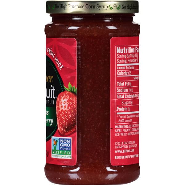 Polaner All Fruit Seedless Strawberry Spreadable Fruit is a fruit spread with flavor and quality worthy of sharing across generations. Polaner fruit spread is proudly manufactured in the USA with only the finest real fruits. Sweetened only with fruit juice, Polaner All Fruit Strawberry provides an irresistible sweetness that is unmatched by strawberry jam, strawberry preserves or strawberry jelly. The lack of seeds keeps Polaner spreadable fruit velvety smooth for all of the flavor of Polaner fruit with none of the seeds. Non GMO verified, this gluten free strawberry fruit spread is made with no high fructose corn syrup, has no cane sugar added and contains 35 calories per serving. You can confidently enjoy the tradition and taste of Polaner All Fruit strawberry fruit spread whether you smear it on your morning bagel, slather it on a lunchtime PB&J sandwich or use it as the base of a sweet glaze. This jar of Polaner All Fruit Spreadable Fruit Strawberry is easy to open and should be stored in the refrigerator until you are ready to bake, cook or grill up some delicious recipes with real fruit flavor. Since 1898, American families have passed Polaner fruit spread to one generation after another. The reason is simple – quality ingredients and all fruit flavor.
