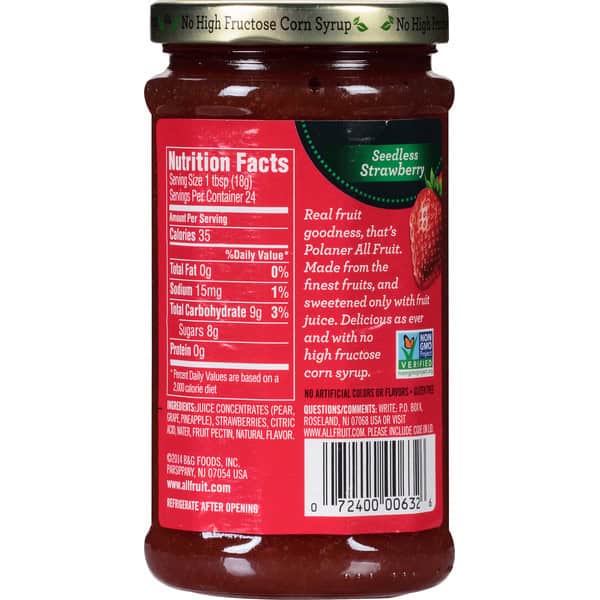 • One 15.25 oz jar of Polaner Gluten Free Seedless Strawberry Spreadable Fruit