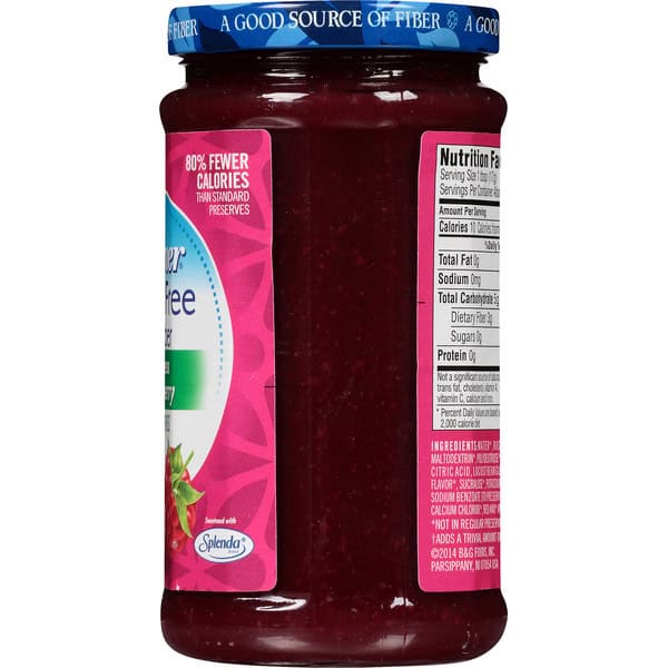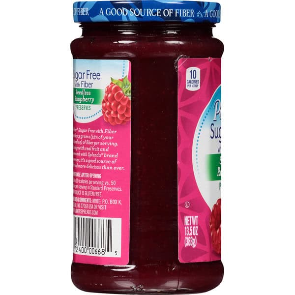 This Polaner Sugar Free with Fiber Seedless Raspberry Preserves is a delicious addition to sandwiches, toast, muffins or croissants. It is made from real fruit for a bold flavor you will love and that will liven up any meal. Polaner with fiber also contains 80 percent fewer calories than standard preserves and is packed with dietary fiber sourced from maltodextrin. Inside you will find 13.5 oz of sugar free, Splenda sweetened product packaged in a convenient resealable jar that helps to preserve the fresh taste you want.