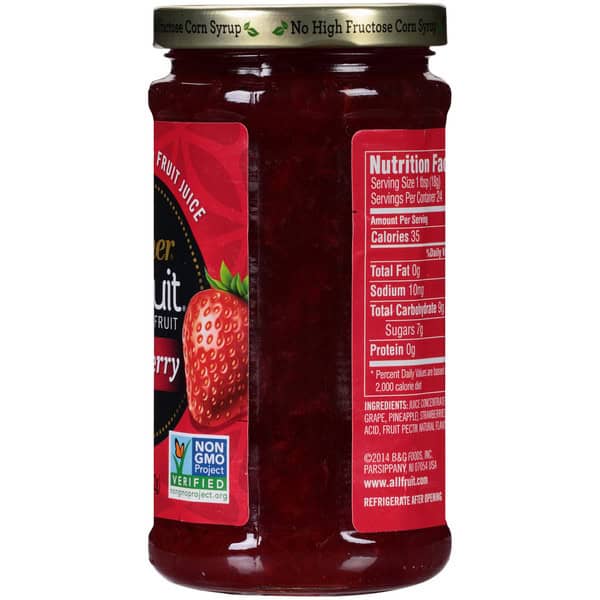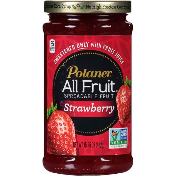 Polaner All Fruit Strawberry Spreadable Fruit is a fruit spread with flavor and quality worthy of sharing across generations. Polaner fruit spread is proudly manufactured in the USA with only the finest real fruits. Sweetened only with fruit juice, Polaner All Fruit Strawberry provides an irresistible sweetness and satisfying texture that is unmatched by strawberry jam, strawberry preserves or strawberry jelly. Non GMO verified, this gluten free strawberry fruit spread is made with no high fructose corn syrup, has no cane sugar added and contains 35 calories per serving. You can confidently enjoy the tradition and taste of Polaner All Fruit strawberry fruit spread whether you smear it on your morning bagel, slather it on a lunchtime PB&J sandwich or use it as the base of a sweet glaze. This jar of Polaner All Fruit Spreadable Fruit Strawberry is easy to open and should be stored in the refrigerator until you are ready to bake, cook or grill up some delicious recipes with real fruit flavor. Since 1898, American families have passed Polaner fruit spread to one generation after another. The reason is simple – quality ingredients and all fruit flavor.