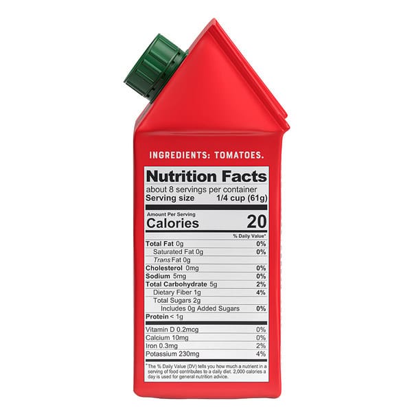 All-natural tomato sauce Made with 100% Italian tomatoes 0 g trans fat 0 mg cholesterol No preservatives No artificial ingredients No added salt BPA free Fat free Gluten free Non-GMO Project verified