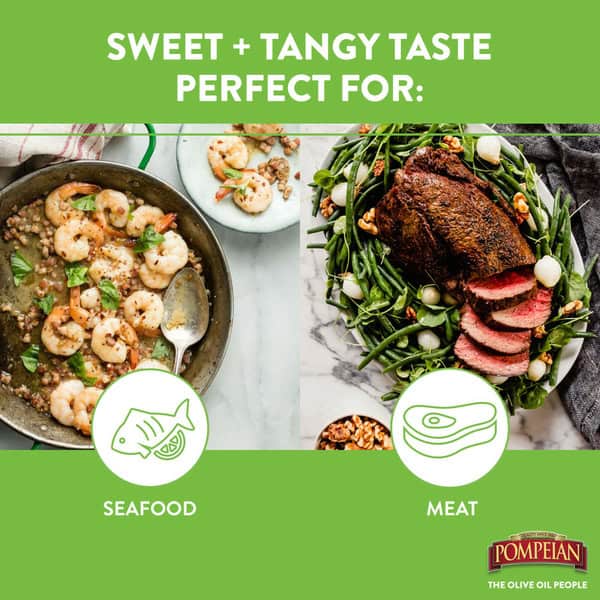 Expertly crafted by our family of farmers, this Pompeian’s gourmet Balsamic Vinegar is sweet and tangy. Ideal for salad dressings, sauces, seafood and meat dishes, this Balsamic Vinegar pairs perfectly with any of our farmer-crafted extra virgin olive oils.