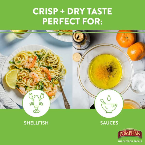 Expertly crafted by our family of farmers, this Pompeian’s gourmet White Wine Vinegar is crisp and dry. Ideal for salad dressings, shellfish and sauces, this White Wine Vinegar pairs perfectly with any of our extra virgin olive oils.