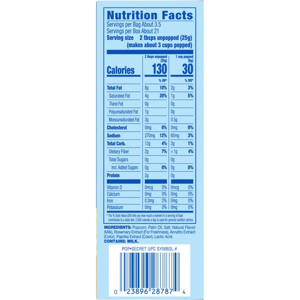 Popcorn, Palm Oil, Salt, Natural Flavor (milk), Rosemary Extract (for Freshness), Annatto Extract (color), Paprika Extract (color), Lactic Acid