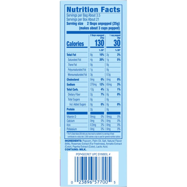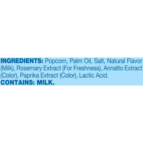 Popcorn, Palm Oil, Salt, Natural Flavor (milk), Rosemary Extract (for Freshness), Annatto Extract (color), Paprika Extract (color), Lactic Acid