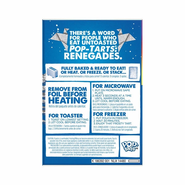 Pop-Tarts Wildlicious Frosted Wild Berry toaster pastries are a delicious treat to look forward to. Jump-start your day with a sweet, gooey, wild berry-flavored filling encased in a crumbly pastry crust and topped with yummy purple and blue frosting. A quick and tasty anytime snack for the whole family, Kellogg’s Pop-Tarts toaster pastries are an ideal companion for lunch boxes, after-school snacks, and busy, on-the-go moments. Just pop them in your toaster for a warm, golden crust or enjoy them right out of the pouch with a glass of ice-cold milk.