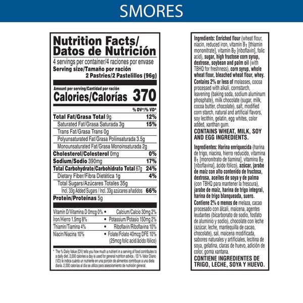• Soft toaster pastries with frosting on the outside and s’mores-flavored filling on the inside