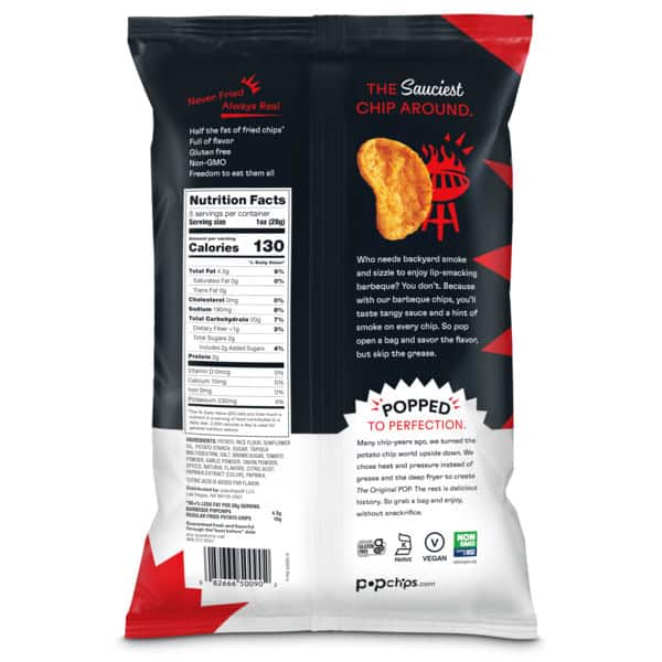 Who needs backyard smoke and sizzle to enjoy lip-smacking barbeque? You don’t. Because with our barbeque chips, you’ll taste tangy sauce and a hint of smoke on every chip. So pull up to the picnic table and savor the flavor, but skip the grease.