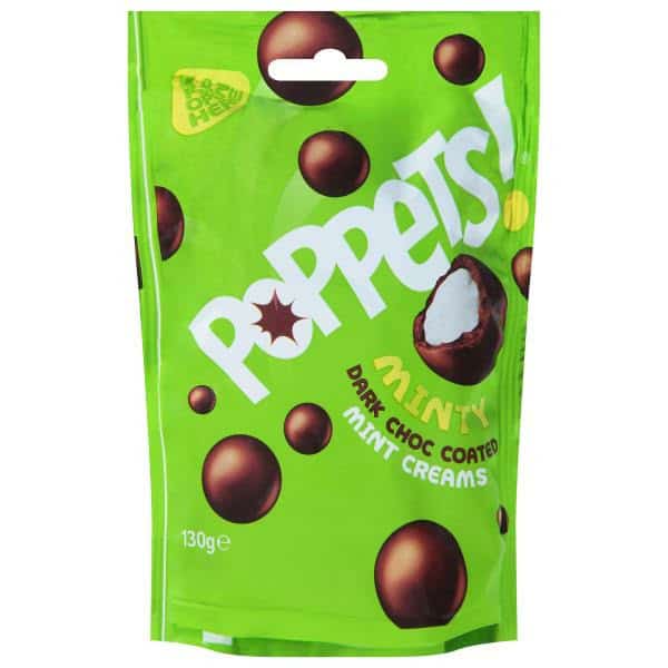 Sugar, Dark Chocolate 39% (Sugar, Cocoa Mass, Vegetable Oils (Sal, Palm, Shea), Cocoa Butter, Emulsifier (Soya Lecithin), Flavouring), Glucose Syrup, Glazing Agents (Dextrinised Tapioca Starch, Gum Arabic, Shellac), Invertase, Peppermint Oil, Coconut Oil, Flavouring, Polydextrose.