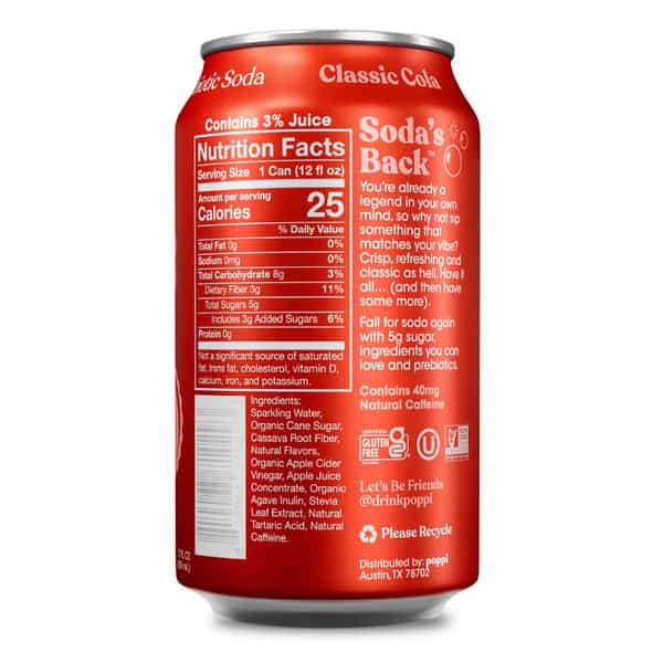 IngredientsSparkling Filtered Water, Organic Cane Sugar, Organic Agave Inulin, Organic Apple Cider Vinegar, Apple Juice*, Natural Flavors, Tartaric Acid, Stevia, Green Tea Extract.