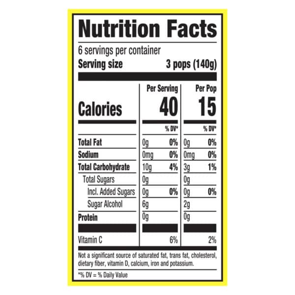 • Popsicle Ice Pops make the perfect responsible frozen dessert with only 15 calories, 0 g of saturated fat, and 0 g of sugar