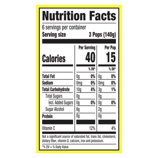• Popsicle Sugar Free Ice Pops make the perfect responsible frozen dessert with only 15 calories, 0 g of saturated fat, and 0 g of sugar