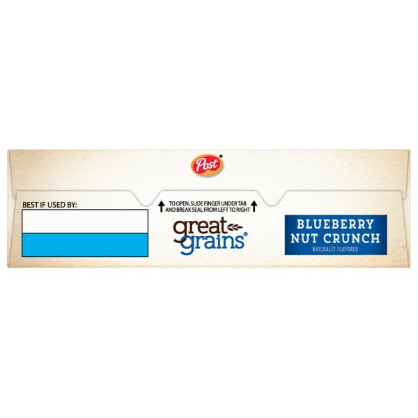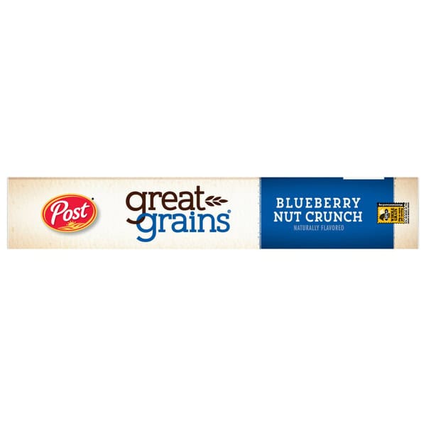 Start your morning with an exciting crunch with Great Grains Blueberry Nut Crunch Blueberry Cereal. Great Grains blueberry cereal is made with dried blueberries and delicious almonds mixed with crunchy granola clusters and crispy cereal flakes to help start your day on a high note. Take a moment for yourself and enjoy a wholesome breakfast cereal with Great Grains Blueberry Cereal.