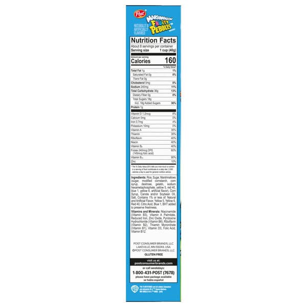 Celebrate creativity and fruity Yabba Dabba Doo deliciousness with Post Fruity PEBBLES Marshmallow Cereal. These colorful gluten free cereal pieces spark joy at breakfast time for kids and help empower their inner creativeness. Fruity PEBBLES marshmallow kids cereal is a delicious fruity cereal that delivers a sweet fruity crunch with every spoonful and inspires kids of all ages to dream big and Never Stop Doo-ing.