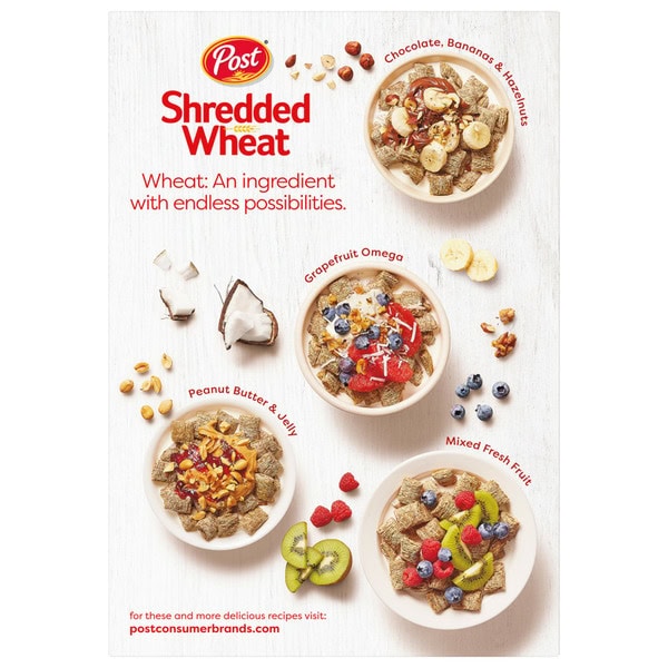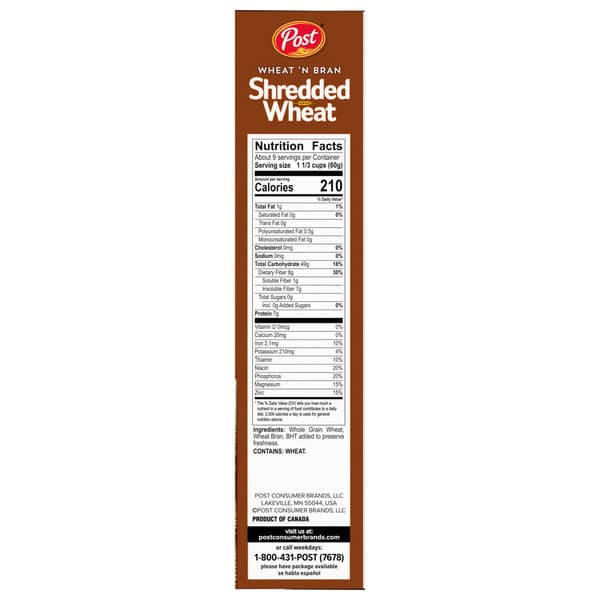 Start your day with simple goodness and enjoy the adventures ahead. Post Shredded Wheat Spoon Size Wheat’n Bran cereal is made with whole grain wheat and wheat bran, making it an excellent source of fiber. Pick up a box today!