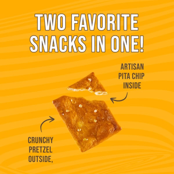 The golden-brown outside of a pretzel meets a twice-baked, artisan pita chip to create a new, sea salt-sprinkled rendition of an old classic that’s remained unchanged for DECADES.
