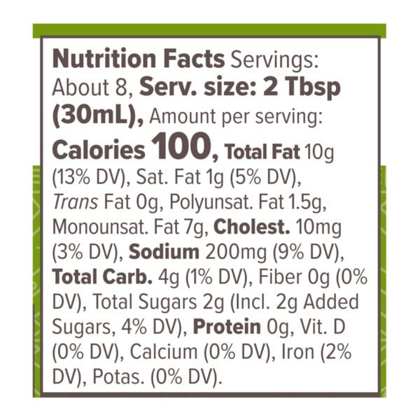 Avocado Oil, Water, Organic White Balsamic Vinegar (organic White Wine Vinegar, Organic Grape Must), Organic Honey, Organic Egg Yolks, Organic Lime Juice Concentrate, Potato Starch, Dried Cilantro, Contains Less Than 2% Of Sea Salt, Garlic, Spinach Powder (color), Onion Powder, Tamarind Seed Gum, Sal Mushroom Extract (to Maintain Freshness), Dried Basil.
