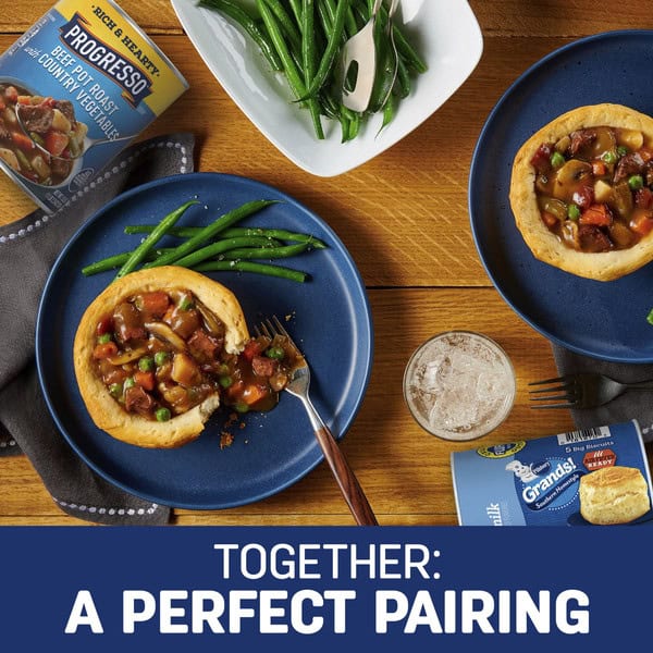 • VERSATILE: Brighten up an ordinary weeknight with our Easy Beef Stew in Biscuit Cups recipe, using our beef pot roast soup along with Pillsbury Grands! Southern Homestyle Buttermilk Biscuits