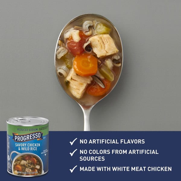 Like our original recipe, Progresso Reduced Sodium Savory Chicken & Wild Rice Soup is delicious and soothing. Enjoy this classic soup flavor without the added sodium, making for a healthier dining experience. Our all natural chicken and wild rice are the perfect combination of ingredients, making for a hearty and wholesome meal. Whether you’re looking for a quick, easy lunch or a rich, nutritious dinner option, this soup is the ideal choice. Ready in minutes by either stove or microwave, you won’t have to wait long to indulge in this deeply satisfying soup. Light on the sodium and heavy on the flavor, you can expect just the delicious taste Progresso has delivered consistently for many years.