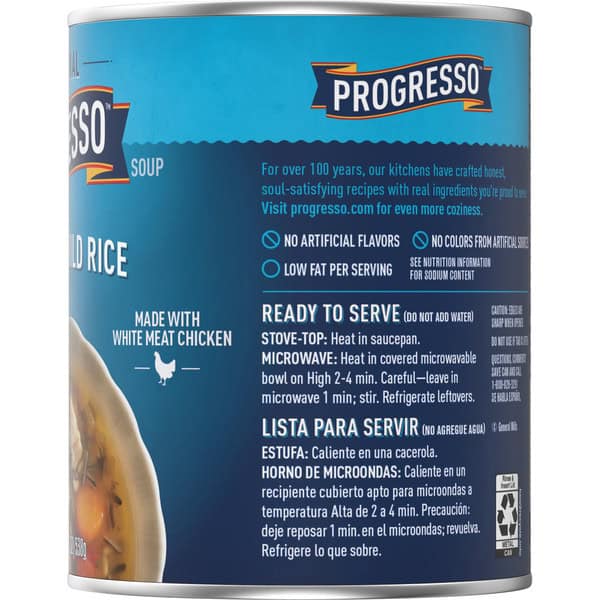 Progresso Traditional Chicken & Wild Rice Soup is created in the classic style of rustic Italian cuisine. Made with chicken, hearty vegetables, and wild rice, this low fat Midwestern favorite contains only 80 calories per serving. It includes no artificial flavors and no colors from artificial sources. It’s ready to serve in under five minutes and pairs well with toasted sandwiches. Great for lunch or dinner, this soup is made to satisfy even the most intense cravings. Pair with a freshly made sandwich or bread option of your choice for a classically satisfying combination.