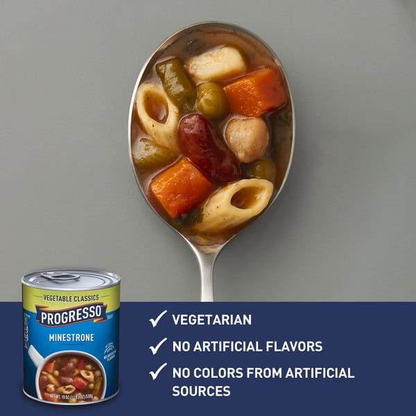 • CONTAINS: One 19 oz can of Progresso Vegetable Classics Minestrone Soup; About two servings per can