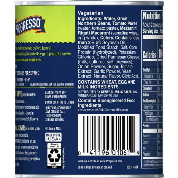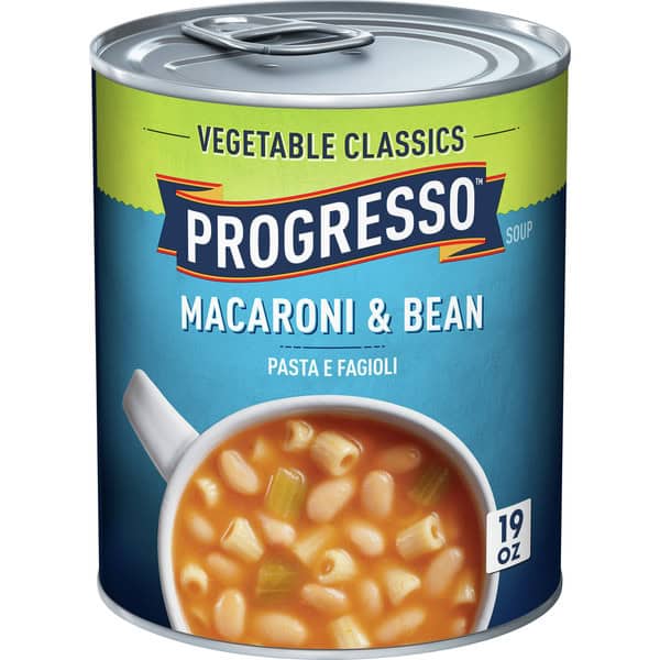 • CONTAINS: Shelf-stable Progresso Vegetable Classics, Macaroni and Bean Canned Soup, 19 oz