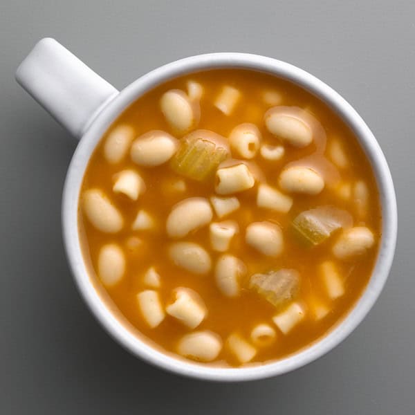 • MACARONI AND BEAN: Savor the taste of this vegetarian soup made with Great Northern beans, macaroni, celery, and more in a tomato-based broth