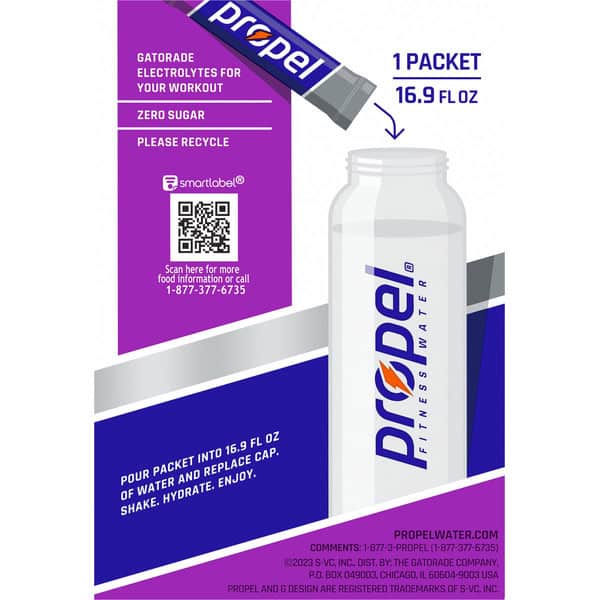 Give your workout a boost of fruit flavor. Each Propel provides electrolytes, vitamin B, and antioxidant vitamins C and E, so you can hydrate, replenish and get your best workout without adding calories.