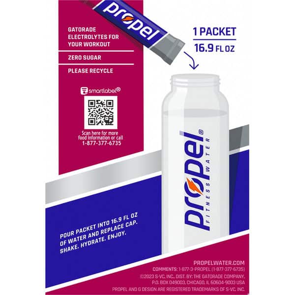 Give your workout a boost of fruit flavor. Each Propel sports water beverage provides electrolytes, vitamin B, and antioxidant vitamins C and E, so you can hydrate, replenish and get your best workout without adding calories.