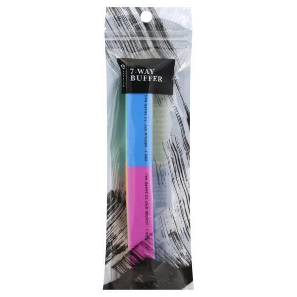Side 1: Coarse grit to shape nail. Side 2: Medium grit to shape nail. Side 3: Fine grit to neaten bed of nail. Side 4: Even out. Side 5: Smooth nail. Side 6: Buff nail. Side 7: Shine nail.