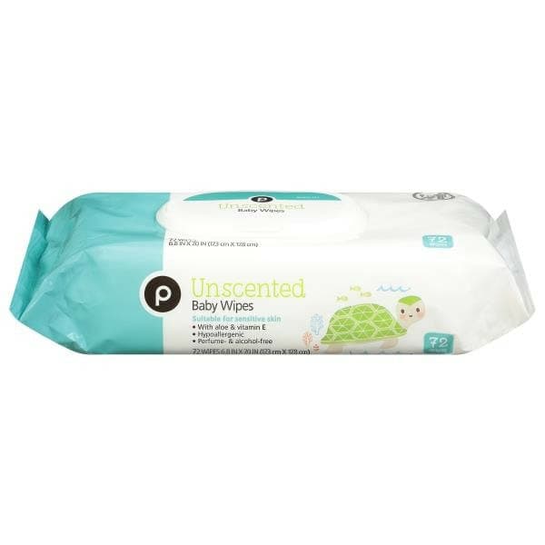Suitable for sensitive skin. With aloe & vitamin E. Hypoallergenic. Perfume & alcohol-free. Safe for baby, hands, and face. Dispose of properly.