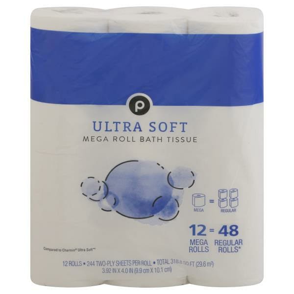 Mega = regular. 12 mega rolls = 48 regular rolls (based on number of sheets). Compared to Charmin Ultra Soft (Charmin Ultra Soft is a registered trademark of the Procter & Gamble Company). Septic safe. Sustainable Forestry Initiative: Certified chain of custody. Promoting sustainable forestry. www.sfiprogram.org.
