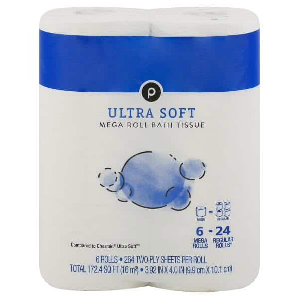 Mega = regular. 6 mega rolls = 24 regular rolls (based on number of sheets). Compared to Charmin Ultra Soft (Charmin Ultra Soft is a registered trademark of the Procter & Gamble Company). Septic safe. Sustainable Forestry Initiative: Certified sourcing. www.sfiprogram.org.