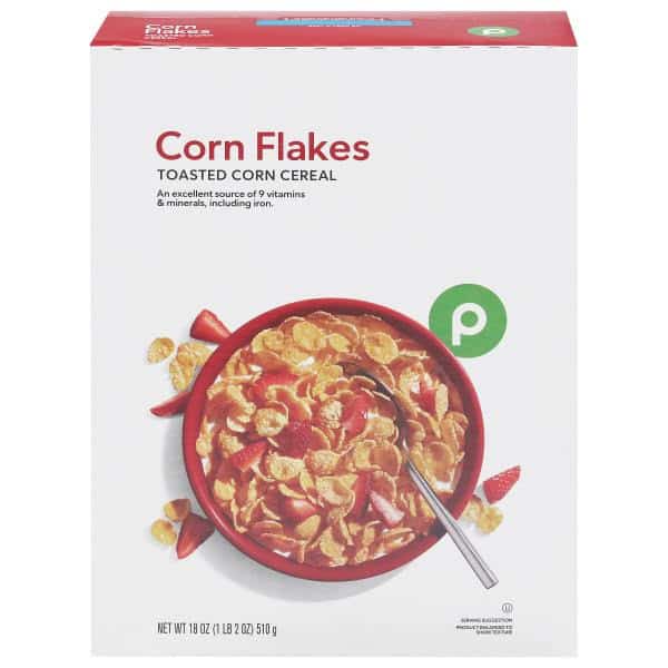 Milled Corn, Sugar, Salt, Malted Barley Syrup. Vitamins and Minerals: Reduced Iron, Sodium Ascorbate (Vitamin C), Niacinamide, Pyridoxine Hydrochloride (Vitamin B6), Riboflavin (Vitamin B2), Thiamine Mononitrate (Vitamin B1), Vitamin A Palmitate, Folic Acid, Vitamin D, Vitamin B12.