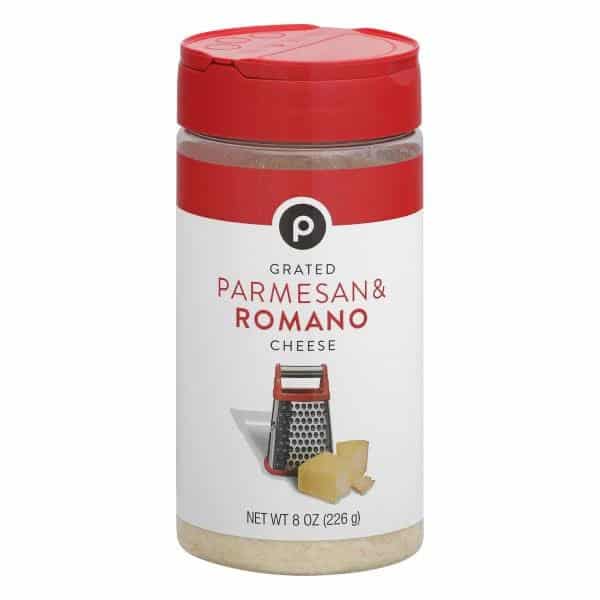 Parmesan Cheese (Cultured, Pasteurized Part-Skim Milk, Salt, Enzymes), Romano Cheese from Cow”s Milk (Cultured, Pasteurized Romano Part-Skim Milk, Salt, Enzymes), Powdered Cellulose (Added to Prevent Caking), Salt, Potassium Sorbate (a Preservative).