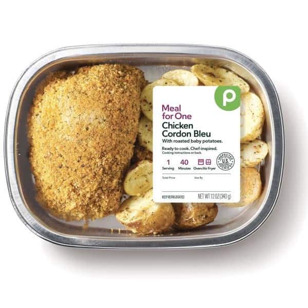 Boneless Chicken Breast, Roasted Baby Potatoes (potatoes, Olive Oil, Contains 2% Or Less Of Butter [cream, Salt], Dehydrated Garlic, Dehydrated Green Bell Pepper, Dehydrated Red Bell Pepper, Maltodextrin, Natural Flavors, Nonfat Milk, Parmesan Cheese [milk, Salt, Cultures, Enzymes] Sea Salt, Spices, Turmeric [color], Whey), Swiss Cheese (pasteurized Part-skim Milk, Cheese Cultures, Salt, Enzymes, Powdered Cellulose [anticaking]), Cooked Ham (cured With Water, Salt, Turbinado Sugar, Cultured Celery Powder, Baking Soda, Cherry Powder, Sea Salt), Panko Bread Crumbs (bread Crumb [unbleached Wheat Flour, Sugar, Yeast, Salt], Parmesan And Romano Cheese [pasteurized Cow’s Milk, Cheese Cultures, Salt, Enzymes], Cheese Flavor [maltodextrin, Enzyme Modified Butter {milk, Starter Culture, Enzymes], Yeast Extract, Nonfat Dry Milk, Lactic Acid], Salt, Spices, Paprika And Turmeric, Onion & Garlic, Extractives Of Paprika And Turmeric), Canola Oil, Vinegar, Salt, Black Pepper, Rosemary Extract (canola Oil, Rosemary Extract).