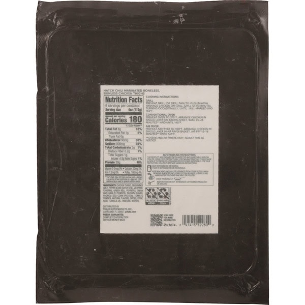 Chicken Thighs, Seasonings (salt, Pepper Blend [hatch Chili, Jalapeno, Cayenne, Green Bell Peppers], Onion And Garlic Powder, Brown Sugar, Hydrolyzed Corn Protein, Tomato Powder, Natural Flavors, Spices, Citric Acid, Canola Oil, Vinegar, Water)